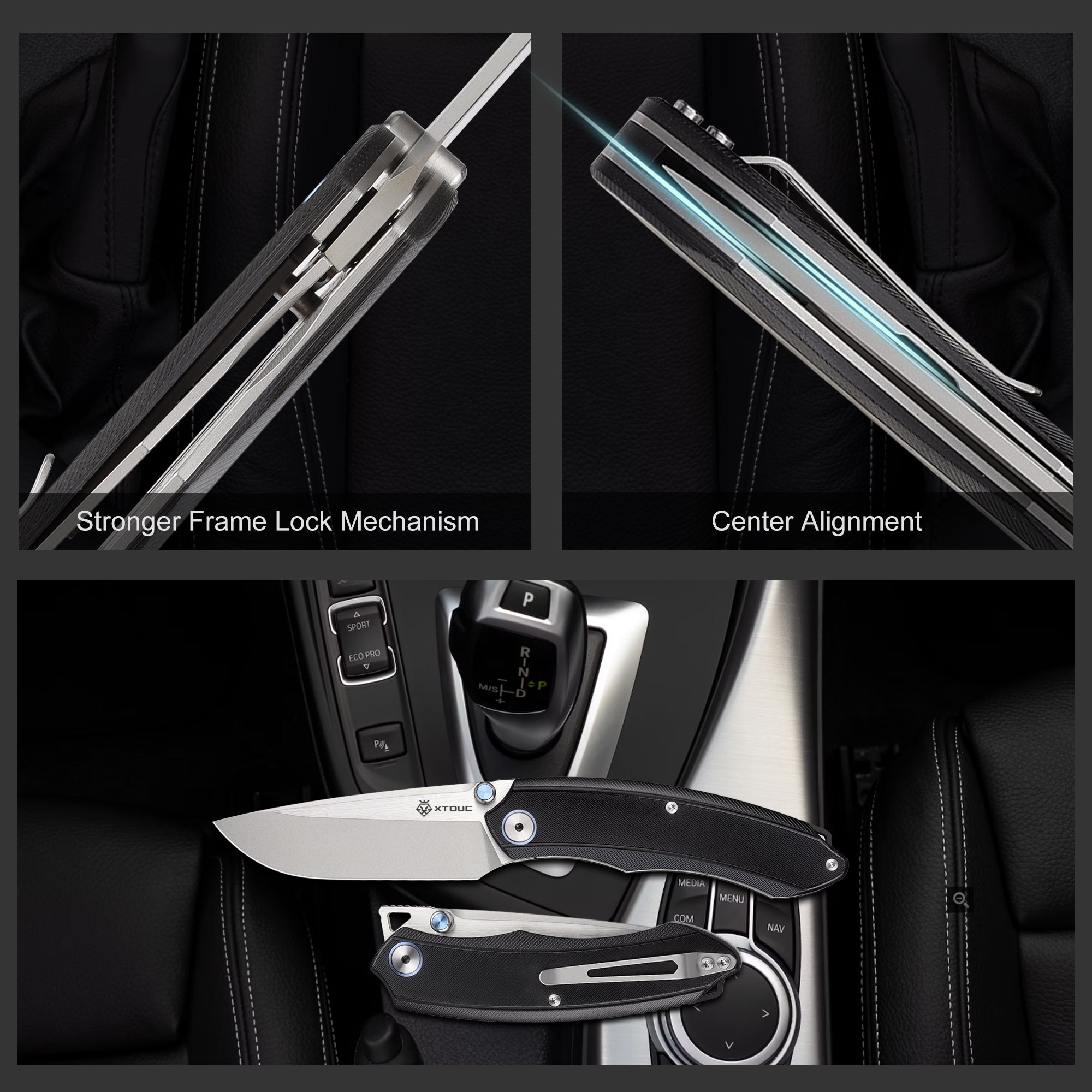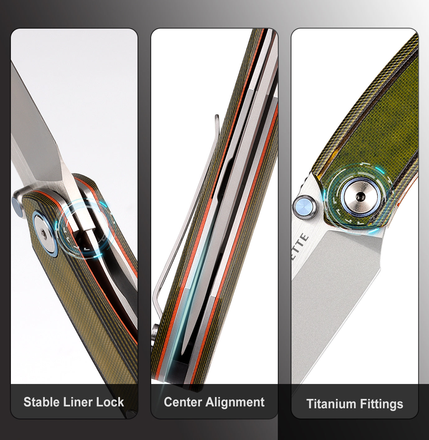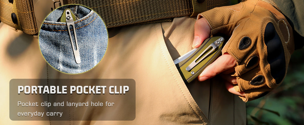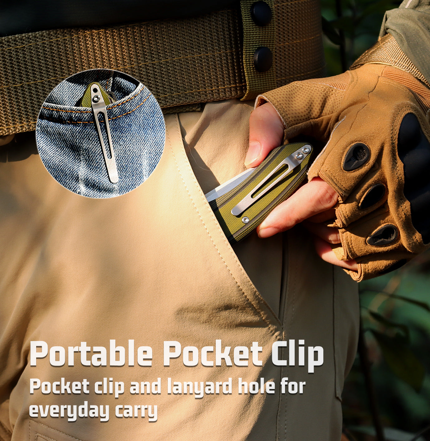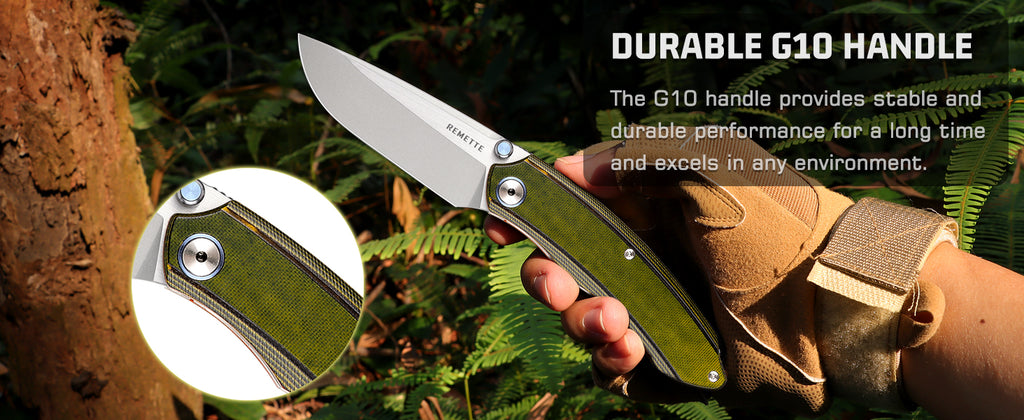 【DURABLE G10 HANDLE】-The G10 handle provides stable and durable performance for a long time and excels in any environment. The handle with a curve makes you better grip the EDC pocket knife!