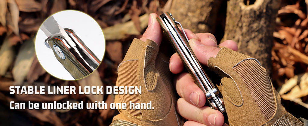 【TWO WAYS TO OPEN】-Slide the front flipper or thumb post to quickly open the pocket knife. Lined lock for greater convenience and stability!