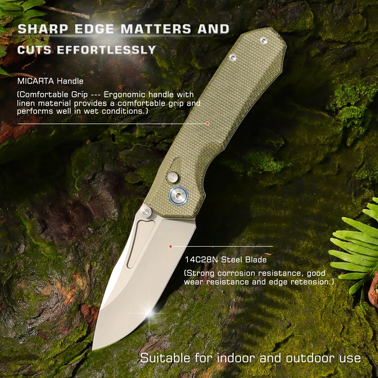 REMETTE Rhino --- Made of Stonewashed 14C28N steel, combining edge retention, high hardness and corrosion resistance. The folding 4.17-inch EDC knife is perfect for everyday carry, and the sophisticated gift box and practical accessories make it a great gift for men and women.