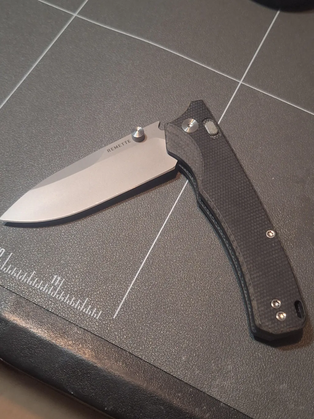 Most of their models have names (Wild Species, Rhino, Allosaurus... etc.) This one has letters letters numbers numbers numbers. Anyhoo... Seeing as I already had two other Remette folders, when this one came available, I just had to nab it up. And, as expected, I was NOT disappointed. Super light in the pocket, awesome blade geometry, reversible deep carry pocket clip, comfortable Micarta scales, top button plunge lock... I can go on listing all the attributes with this knife. Look, if you haven't scooped up a Remette knife yet, you're backing up. The price point is right where it needs to be, too. You get a LOT of knife for the value.