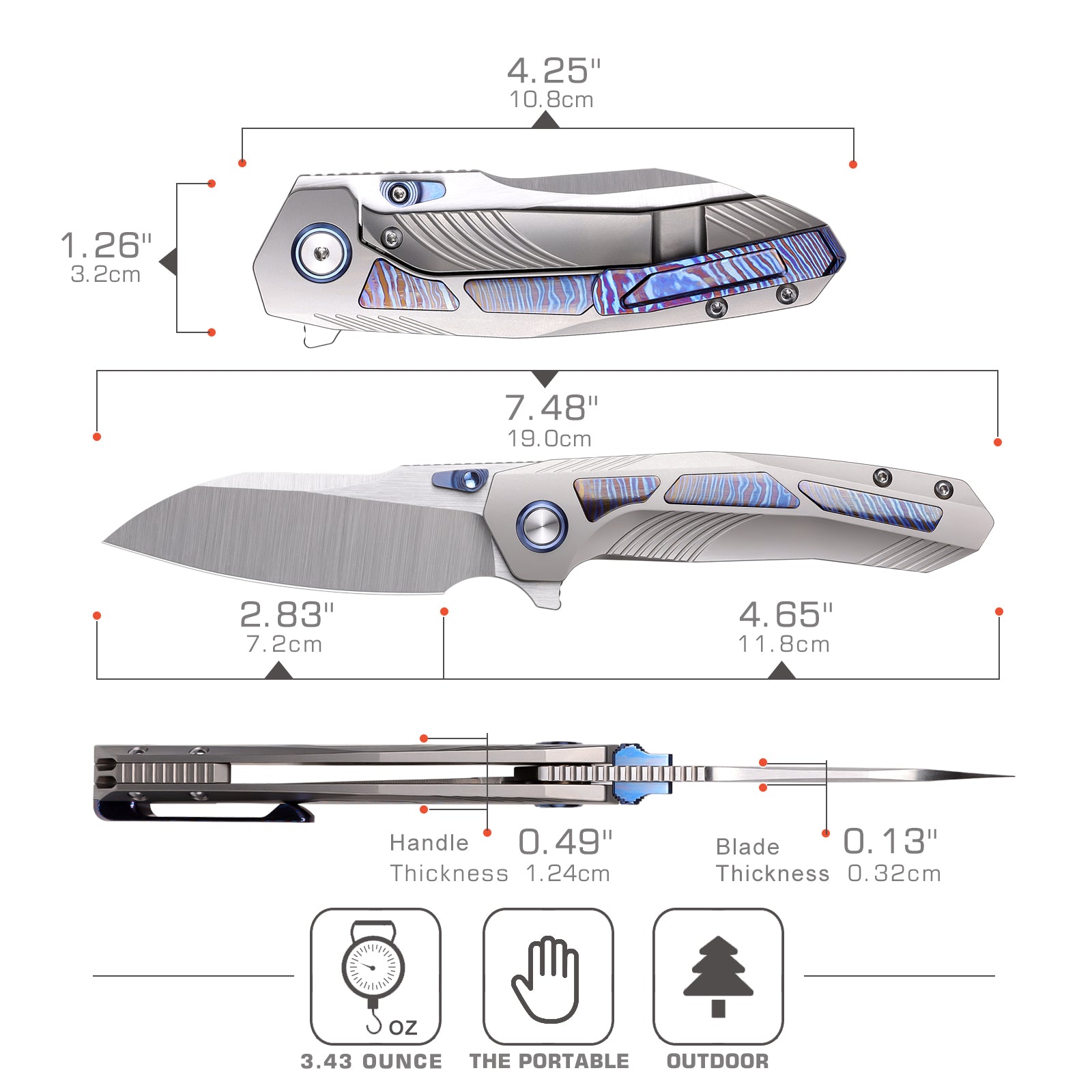 Handle Material: Titanium + Timascus