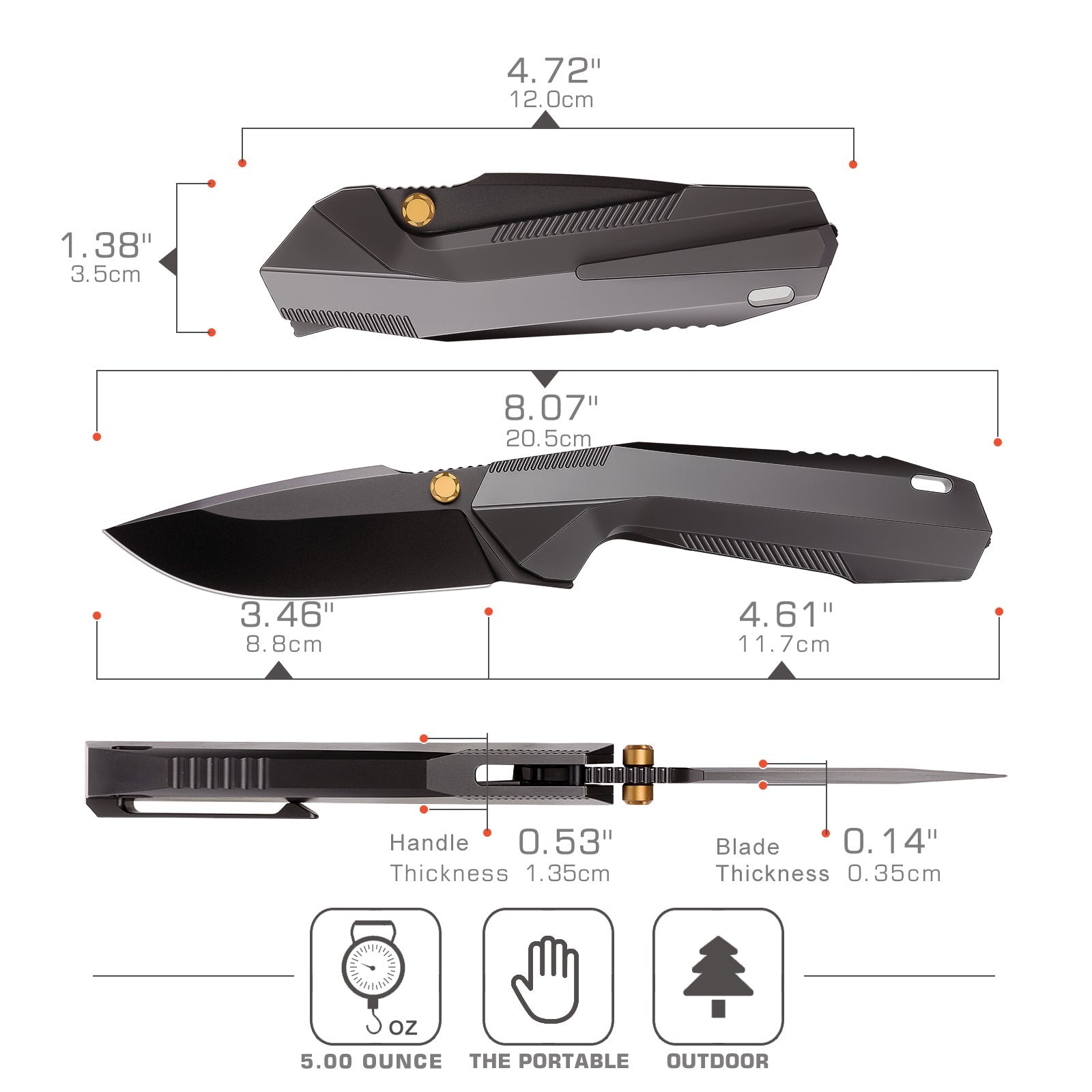 Knife Weight: 5.0oz / 142g